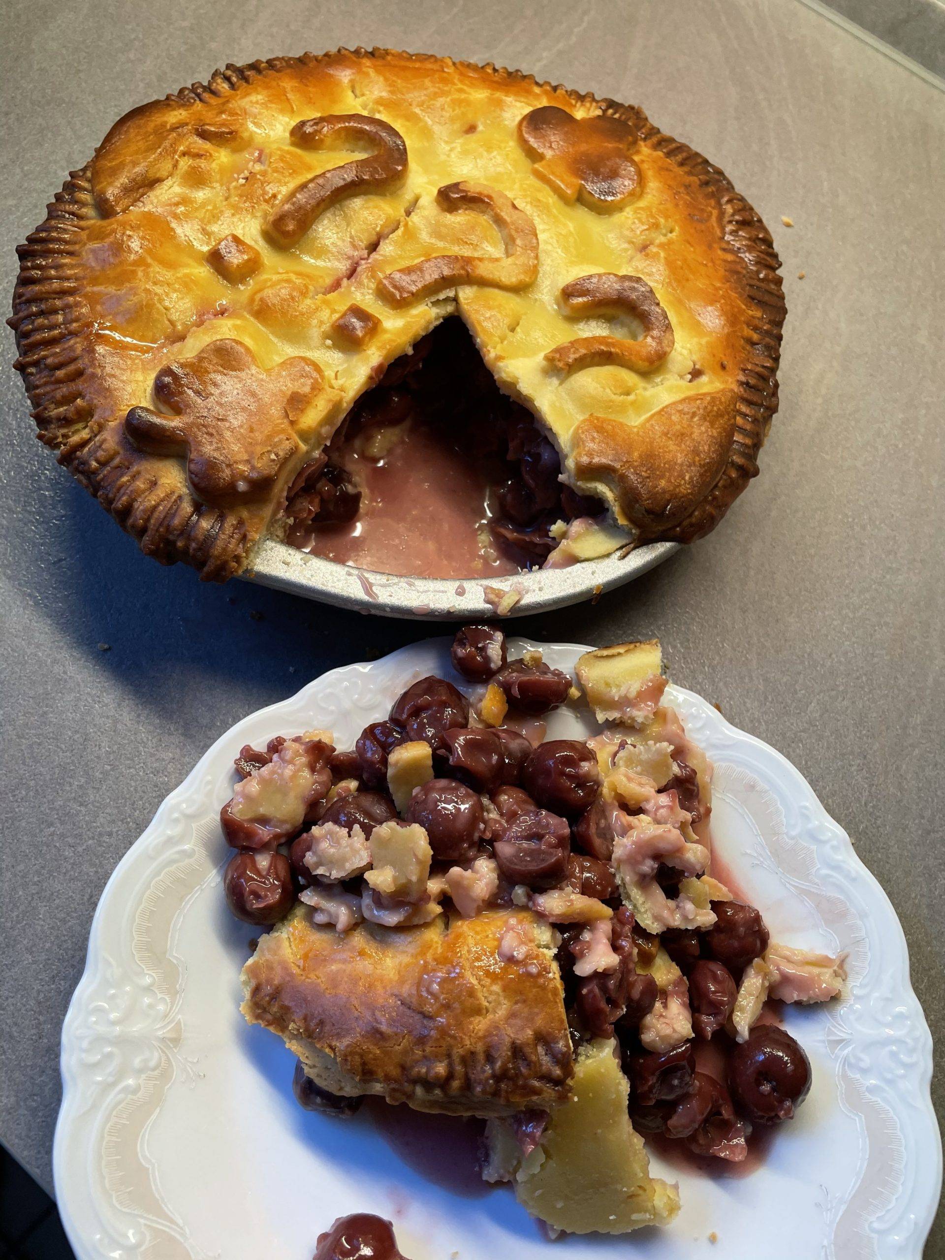 So bin ich auf dieses Rezept gestoßen. Ich hab es mir sooo lecker vorgestellt und wurde leider ziemlich enttäuscht. Die Kirschen waren nach dem Backen von der Konsistenz her genauso wie vor dem Backen. Es ist nicht dickflüssiger oder sogar richtig fest geworden. Einfach nur ziemlich matschig und teilweise noch flüssig. Man konnte es essen, aber nicht am Stück. Wir haben den Pie direkt aus der Form gelöffelt.